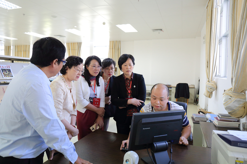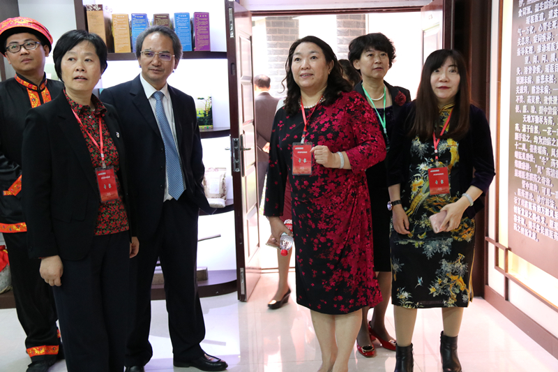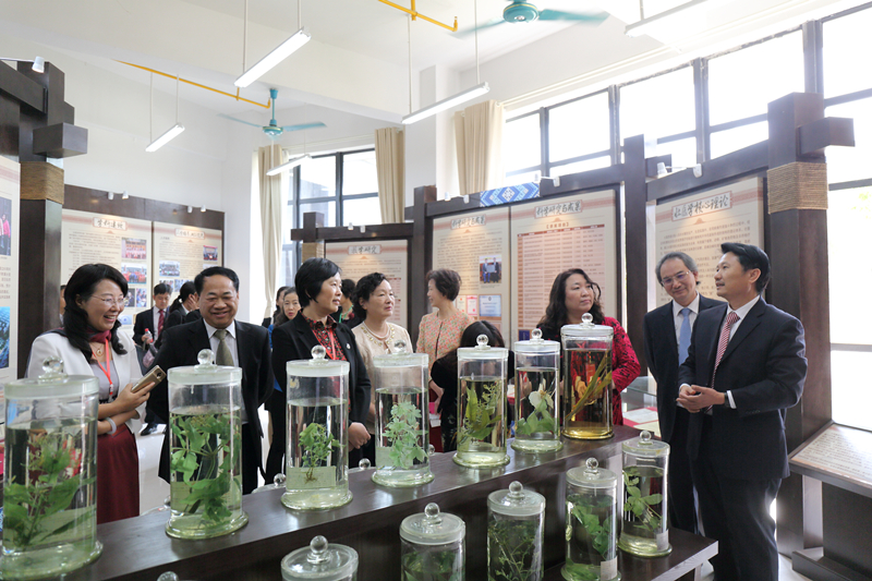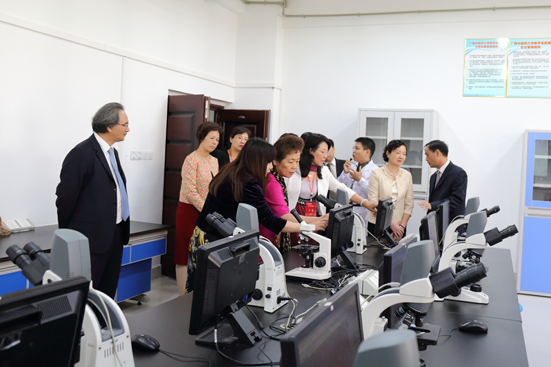 在学校领导及相关部门负责人的陪同下,郭桂芳一行考察了学校图书馆、现代教育技术与信息中心、大学生兰风古琴社、壮医药办学成果展、瑶医药文化展、中医药壮瑶医药教学实验中心、解剖实验楼等。