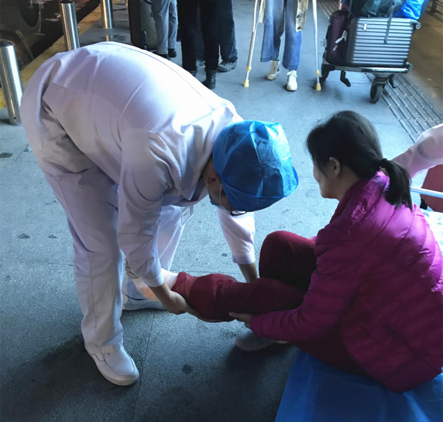 陈女士通过朋友从网上找到我院急诊科的电话,希望得到急诊科医护人员帮助,“毕竟身边无亲人照顾,手术后左下肢肿胀疼痛厉害,救护车更令人放心”。急诊科接到求助电话,立即与我院骨创伤科及南宁吴圩国际机场沟通,并马上派出医务人员及救护车前往机场做好转运准备。