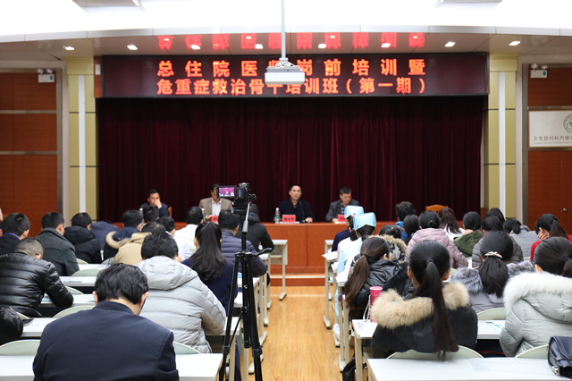 1月8日上午,我院第一期总住院医师岗前培训暨危重症救治骨干培训班在B座十楼教室举办,医院院长唐友明,副院长韦思尊、陈锋,医务部主任郑东林出席培训班开幕式,来自各临床科室共九十余名医师、护士参与本期培训,郑东林主持会议。
