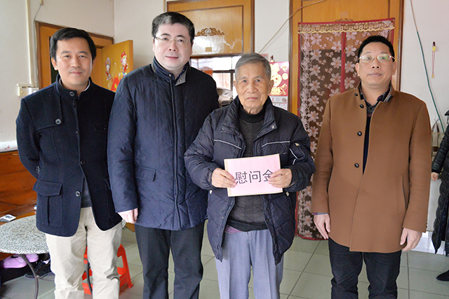 在2018年农历春节来临之际,医院院长唐友明,党委书记高宏君,党委副书记、副院长陈日兰,副院长庞刚、韦思尊,党委副书记、纪委书记黄建民,副院长陈锋分别带领相关部门负责人于近日走访慰问了韦贵康、徐富业、蓝青强、蒙定水、林寿宁、王大伟等50多位我院老领导、老专家、老党员、离退休干部、困难职工和学生代表,把慰问金送到他们的手中,感谢他们为医院的发展建设付出的心血和做出的贡献,并代表全院职工向他们致以新春的问候和祝福。