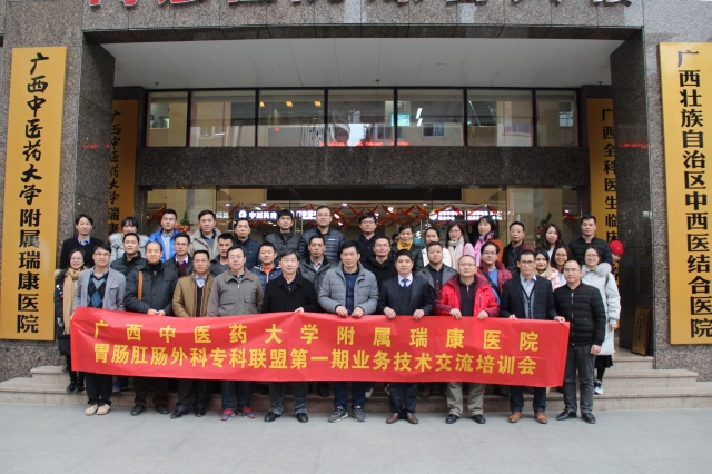 2月2日,第一期“瑞康中西医结合胃肠肛肠外科联盟”业务技术交流培训会在我院召开,医院副院长韦思尊出席会议,来自区内各县市十家医院的胃肠肛肠外科医生齐聚我院,就相关疾病的治疗、护理技术手段进行交流学习。