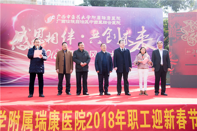 为深入学习宣传贯彻党的十九大精神,倡导和弘扬社会主义核心价值观,增强职工的凝聚力和向心力,全面展示新时期职工文化建设成果和职工健康向上的精神风貌,2月3日上午,医院在华强小学举行2018年职工迎新春趣味游园活动。早上十点,操场上便陆陆续续地开始聚起人群,医院院长唐友明,党委书记高宏君,党委副书记、副院长陈日兰,副院长庞刚、韦思尊,党委副书记、纪委书记黄建民,副院长陈锋,广西中西医研究所所长龙学明到场参加。