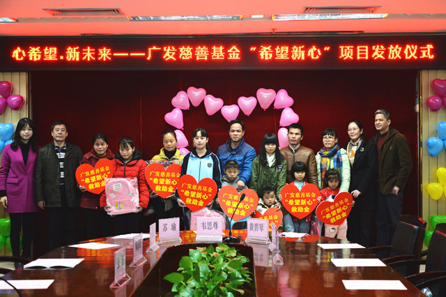 2月6日下午,心希望,新未来——广发慈善基金“希望新心”项目发放仪式在我院23楼学术报告厅举行,医院副院长韦思尊,广发银行南宁分行副行长黄碧琴,广西青少年发展基金会副秘书长苏瑜,医院胸心外科主任杨柳山,副主任范悦等到场参加仪式。
