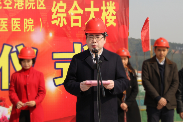 副校长吴琪俊代表广西中医药大学党政领导、全体教职员工衷心祝贺瑞康医院空港院区门诊住院医技综合楼封顶。他指出,习近平总书记在十九大报告中提出实施健康中国战略,是新时代健康卫生工作的纲领。国家大力推行分级诊疗及医联体建设,瑞康医院积极响应国家的号召,本部与空港院区形成紧密医疗集团的关系,优质医疗资源下沉,积极增加医疗建设投入,提升基层医疗服务能力,走在了广西医疗单位的前列。空港院区住院综合大楼的落成,意味着瑞康医院“一院三区”的发展版块更加充实,战略目标逐步实现,为瑞康品牌的可持续发展构筑了坚实的基础,为瑞康影响力的辐射构建了有效的载体,为广西中医药大学中医药文化的传承创新又增添了一个新的支撑点,为中医药学术传承和推广应用提供了进一步延伸的可能。空港院区住院综合大楼的落成,标志着扶绥县卫生基础设施建设提高到了一个新的水平,有利于加强和完善医院服务功能,优化和整合医疗卫生资源,满足不同层次的医疗服务需求,对于进一步改善群众看病就医条件,促进扶绥县卫生事业快速发展具有十分重要的意义。他希望各部门一如既往地支持空港院区医院新址项目的建设,全力以赴为项目建设营造良好的环境,确保项目建设顺利进行。医院应该以此为契机,始终把提高医疗水平和服务质量作为中心任务,不断深化改革,强化内涵建设,大力弘扬中医药文化,加强特色专科建设,努力打造名医名科名院,为发展中医药事业,为维护人民群众的健康做出更大的贡献。