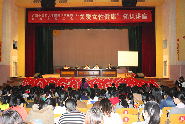 阳春三月,万象更新,在这个生机盎然的季节,在举国上下喜迎“两会”胜利召开的日子里,为庆祝第108个“三八”国际劳动妇女节, 3月7日上午,扶绥县总工会与我院空港院区在扶绥县剧场开展了“关爱女性健康”为主题的女性健康保健知识讲座,为扶绥县女职工们上了一堂理论与实践相结合的医学保健课。