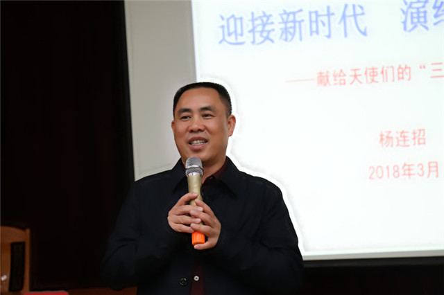 作为2018年“三八”国际劳动妇女节系列活动之一,3月12日下午,学校工会主席杨连招莅临我院作“迎接新时代 ,演绎靓丽人生”的专题讲座,医院领导唐友明、陈日兰、庞刚、黄建民、陈锋以及我院近300名职工到场聆听。讲座由医院院长唐友明主持。