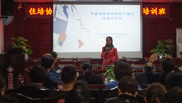 莫湘副院长总结了2016-2017年梧州市中医住培协同基地的工作,并详细介绍了医院目前的情况以及未来发展的目标。