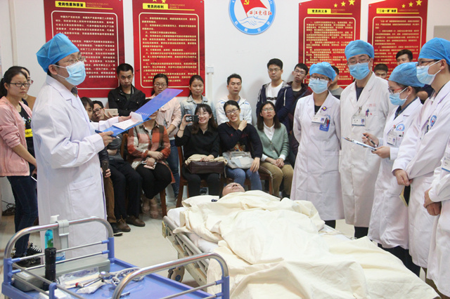 张巍副主任给各教学督导专家组成员、教学秘书、规陪学员等做了中医规范教学查房的示范。