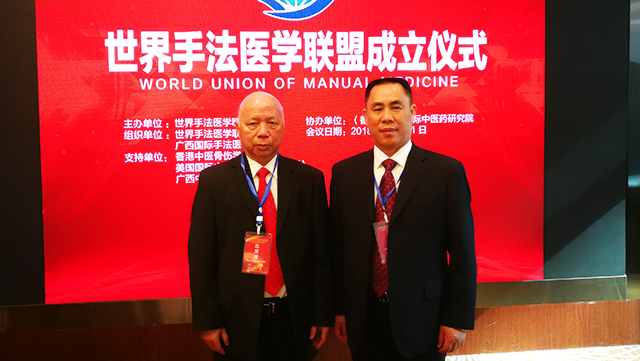 3月31日,世界手法医学联盟成立大会在香港隆重举行。国医大师韦贵康教授,广西中医药大学附属瑞康医院院长唐友明教授,副院长陈锋教授率领由大骨科荣誉主任黄有荣教授、正骨推拿科主任安连生教授,国医大师韦贵康教授学术经验传承研究室主任刘建航博士后,国医大师韦贵康教授第六批学术继承人韩杰副教授等组成的专家团赴香港参加成立大会。香港中医骨伤学会杨卓明理事长,上海中医药大学原校长、世界中医骨科联合会主席施杞教授,德国传统医学研究院负责人库莫尔夫人,加拿大康复和物理治疗师贝维斯女士等来自世界十几个国家和地区的300多名领导和专家齐聚一堂,共襄盛会。