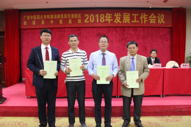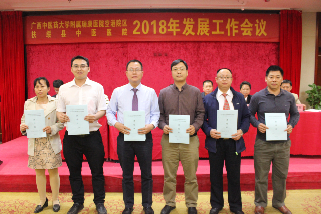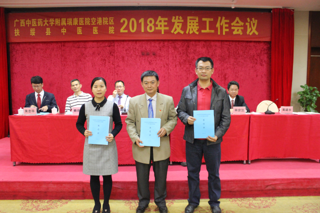 扶绥县卫计局副局长凌绍华在讲话中指出,2018年是瑞康医院托管扶绥县中医医院,成立空港院区的第六个年头。六年来,空港院区为扶绥县医疗卫生事业的发展,注入了强劲的活力,切实把瑞康医院总部的医疗队伍和医疗技术带到了扶绥县,实现了真正意义上的优势医疗资源下沉。他表示,2018年,扶绥县卫计局将会更加紧密配合空港院区,加大投入力度,将扶绥县中医药事业的发展提升到一个新的台阶,特别是在基层中医药骨干的培养以及医共体的发展上,力争提升全县基层卫生人员的业务水平和中医适宜技术使用范围。