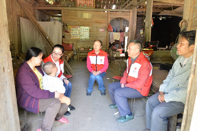 此次回访在自治区红十字会彩票公益金项目执行人陈维均的带领下,会同广西中医药大学附属瑞康医院医护人员及当地政府工作人员,深入到共和乡、雅龙乡、都阳乡对覃贵峰等4名病情严重的患儿进行了回访,并送去慰问品。