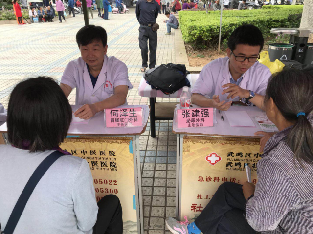 4月26日上午,为进一步深入基层服务大众,做好对口支援工作,我院受武鸣区中医医院的邀请,由医疗服务部组织7位博士专家,赴武鸣区参加武鸣区2018年“壮族三月三”中医药壮医药暨“中华五千年 首诊看中医”宣传月活动,并与武鸣区中医医院携手开展帮扶和义诊活动。