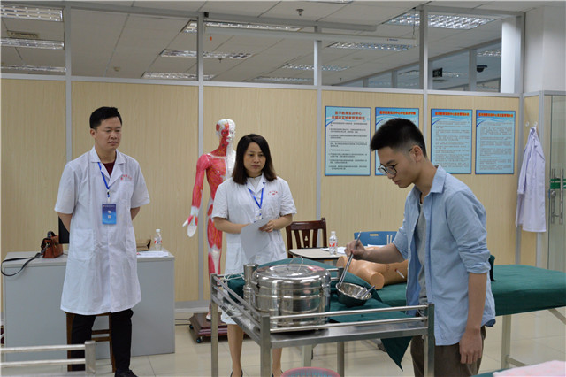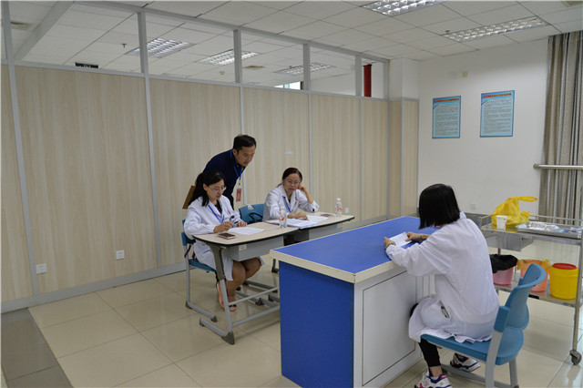 本次考核共设5个考站,第一站是笔试(理论笔试及心理测试),第二站是中医技能考站,第三站是内科技能操作,第四站是外科技能操作,第五站是综合能力面试。本次考试由我院院长唐友明担任主考官,党委副书记、副院长陈日兰担任执行主考官,教务科科长汪国翔担任副考官。陈日兰副书记对各考核站进行了认真的监督与指导,确保考试的顺利进行。各站考官也认真贯彻考前培训会议精神,思想高度重视,公平公正,实事求是地对待每一位考生。