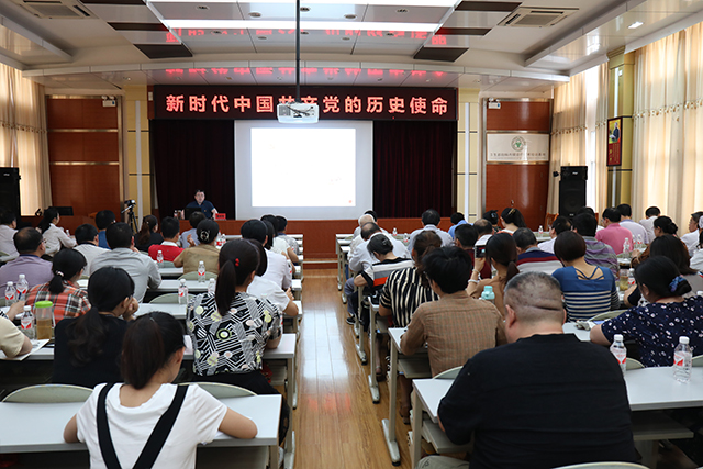 为深入贯彻落实党的十九大精神,适应新要求履行新使命,5月14日下午,我院党委在B座十楼教室举办专题党课。党委书记高宏君以《新时代中国共产党的历史使命》为题,结合党的历史,从“牢记使命 激励前行”“践行使命 面临挑战”“担当使命 四个伟大’”三个方面,为全院各党(总)支部支委及党员干部近120人上了一堂生动的党课,要求各位党员不忘初心和使命,为实现中华民族伟大复兴而不懈奋斗。