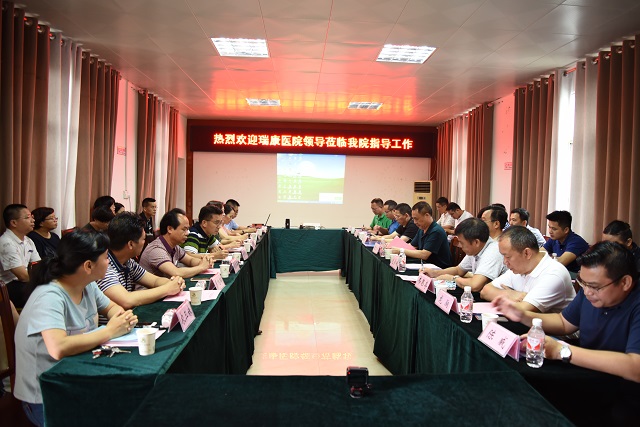 在听取田东县中医医院辛秀团院长的基本介绍后,唐友明院长与田东县中医医院领导班子就医院管理、学科建设、人才培养等深入交谈,共同分析了既往医联体工作模式下取得的成绩和存在的问题。在下一步工作中,广西中医药大学附属瑞康医院将继续做好医联体工作,充分发挥“广西中西医结合(中医)医联体”的核心作用,在管理、技术、服务等资源方面,积极提升医联体内各成员单位的工作和服务能力,优化医疗资源配置、强化基层服务能力。