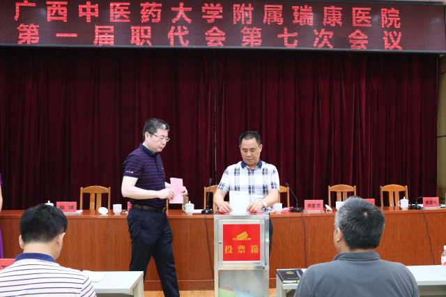 讨论结束后,监票人对现场到会代表人数进行清点,然后通过无记名投票方式对三项提案进行了表决。经过严格的投票、计票及监票程序,会议原则上通过了筹建凤岭南医院、更新购置一台医用X线血管造影机(DSA)及施行《广西中医药大学附属瑞康医院员工奖惩细则(草案)》的提案。
