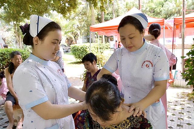 活动现场,虽然烈阳高照,但前来参加义诊的社区居民却络绎不绝,整个活动期间我院义诊服务台被围得水泄不通。护士们认真聆听患者陈述病情,询问患者生活习惯,耐心解答患者的问题,并围绕常见病、多发病、健康保健等方面给社区居民进行医疗指导。同时,护士们通过舞台向社区居民教授中医养生“八段锦”保健操,对前来参加活动的居民进行拔罐、艾灸、耳穴压豆、刮痧等中医诊疗,并宣传普及中医药养生保健知识,提高社区居民日常健康保健意识。