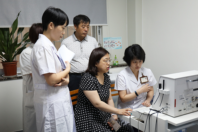 在验收工作会上,唐友明院长介绍了医院情况、脑死亡判定相关工作、规章制度和流程。重症医学科一区伍民生主任介绍了脑死亡判定相关病例,国家卫健委脑损伤质控评价中心常务主任宿英英教授介绍验收条件与要求。中心对我院开展了仪器设备检查验收工作,并对我院的条件进行逐条核对验收,认定验收合格后,中心与我院签署了《脑死亡判定质控协议书》,并颁发了《脑死亡判定质控合格医院》证书。