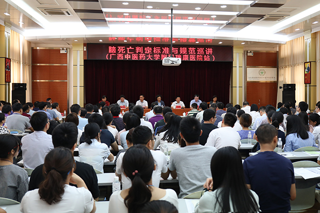 在《脑死亡判定标准与规范》巡讲工作会上,医院唐友明院长在致辞中指出,经过大家的努力,我院于今日通过了国家卫健委脑损伤质控评价中心对我院进行的材料审核和实地验收,成为脑死亡判定质控合格医院,希望通过此次巡讲的机会,让更多我院及兄弟单位医务人员正确认识和理解脑死亡判定的标准及相关规范,为今后我院乃至广西脑损伤评价、脑死亡判定工作的发展做出贡献。