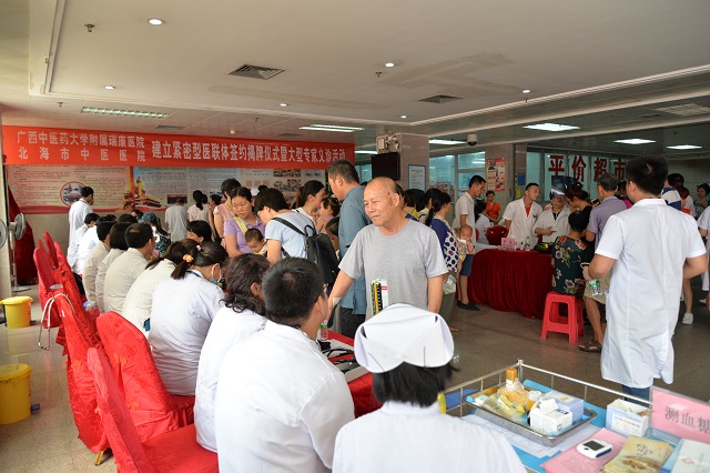 仪式结束后,北海市中医医院和我院的专家教授在现场举行义诊活动,义诊专家达30多名,当天共同接诊患者达500多人。