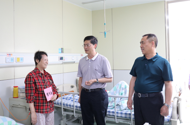 在慰问活动中,学校党委副书记何并文,医院党委书记高宏君,院长唐友明,党委副书记、副院长陈日兰,副院长庞刚、韦思尊,党委副书记、纪委书记黄建民,副院长陈锋、宋策等每到一处,都与党员们促膝谈心,深入了解他们的健康、生活、学习等情况,感谢他们为学校及医院事业做出的贡献,同时希望老党员养好身体、安享晚年,并叮嘱他们有困难及时向党组织反映,也为学校和医院的发展建设多提宝贵建议;希望学生党员认真学习,不断进步,无论在学习上还是生活上都起到先锋模范作用。