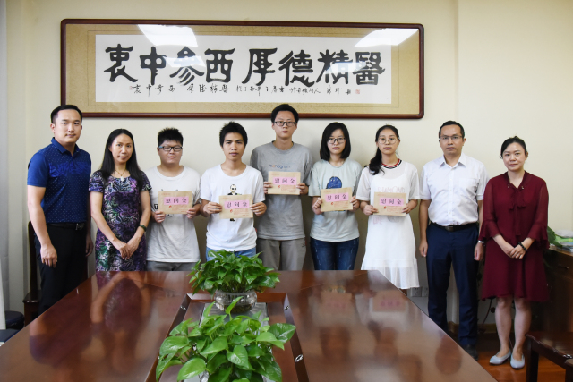 陈日兰副书记(左二)、黄建民副书记(右二)慰问困难学生党员代表