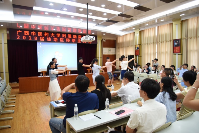 2018年7月4日下午,我院在B座10楼会议室举行2018届住培医师结业典礼暨2018届优秀住培医师表彰大会。医院院长唐友明,医院党委副书记、副院长陈日兰,医院副院长韦思尊,各科室主任及导师代表,教务科全体人员,以及我院2018届全体住院医师共计一百余人参加了结业典礼。结业典礼由党委副书记陈日兰主持。