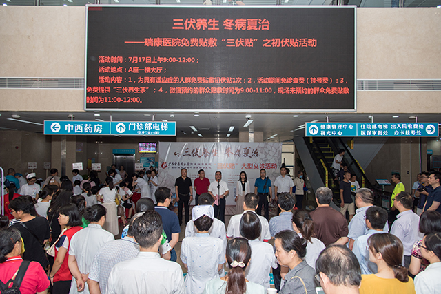 为满足人民群众对改善医疗服务的新期待,创新举措不断提升患者满意度和获得感,展现我院中医药文化,7月17日入伏天早上,我院在A座一楼门诊大厅隆重举行“三伏养生 冬病夏治——瑞康医院免费贴敷‘三伏贴’之初伏贴活动”,针灸科、呼吸内科、脾胃病科、脑病科一区、脑病科二区、老年病科、妇科、产科、儿科、风湿免疫科、肿瘤科三区、耳鼻喉头颈外科、脊柱一区、脊柱二区等14个科室医护人员现场为近千名群众免费贴敷“三伏贴”之初伏贴。