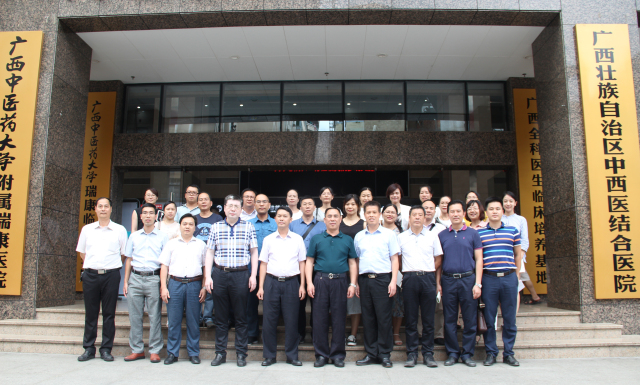 7月20日下午,贺州市中医医院吴家恩院长率领二十余名中层干部到我院参观学习,我院院长唐友明、党委书记高宏君、副院长庞刚、韦思尊、陈锋以及医院各临床、行政部门负责人参与座谈会并陪同参观。党委书记高宏君主持座谈会。