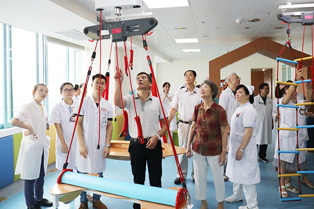 装修后的儿科分为三大部分:普通病区、功能康复病区和新生儿病区。其中普通病区配置60张床位,新生儿病区配置30张床位,功能康复病区配置16张床位,同时设PT、OT、感统训练、中医特色外治等康复项目治疗室。