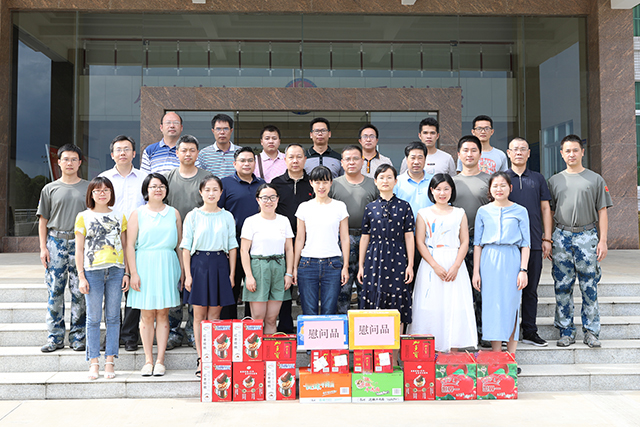 “八一”建军节来临之际,7月30日下午,田阳院区执行院长龙驹、支部书记甘照儒与其他班子成员、中层干部、业务骨干及党员代表到驻田阳空军某部队开展慰问活动,为部队官兵送上慰问品和节日的问候。
