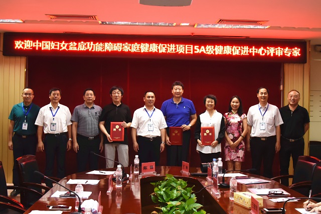 8月9日上午,“中国妇女盆底功能障碍防治家庭健康促进项目5A级健康促进中心”专家组一行在广东省医师协会王智琼的带领下莅临我院检查指导,广西优生优育协会会长陈荔丽、我院全体领导班子等领导专家陪同。专家组通过听取汇报、现场考察等程序对我院的健康促进工作进行了全方位的检查,严格对照评审标准,专家组一致认为,瑞康医院已经达到“中国妇女盆底功能障碍防治家庭健康促进项目5A级健康促进中心”标准。我院成为全国首家“中国妇女盆底功能障碍防治家庭健康促进项目”5A级健康促进中心。