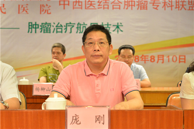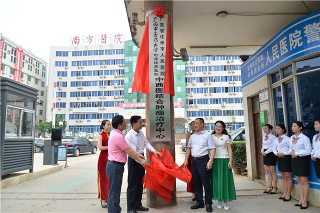 活动由挂牌仪式开始,化州市委书记黄永,我院院长唐友明,副院长庞刚,化州市人民医院院长黄泽红共同为中西医结合肿瘤治疗中心揭幕,随后与两院肿瘤科主任一同为专科联盟牌匾揭幕。