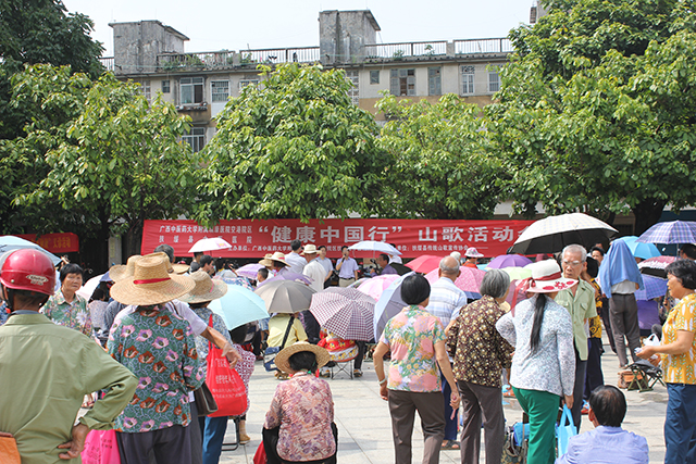 为贯彻落实党的十九大精神和自治区党委、自治区人民政府关于推进健康广西建设等有关部署,全面提高扶绥县全民健康素养水平。根据自治区卫生计生委等6部门印发的《关于开展2018年健康中国行——科学健身主题宣传活动暨健康八桂行宣传周的通知》(桂卫爱卫发[2018]3号)精神,8月15日上午,由我院空港院区主办,扶绥县传统山歌宣传协会协办的健康中国行山歌会在县文化广场举行。院区党总支书记林宗汉出席活动并讲话,活动由扶绥县传统山歌宣传协会会长李国伟主持。