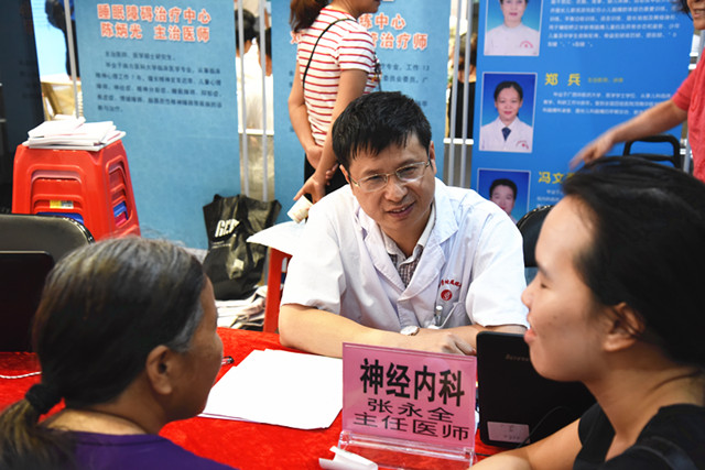 瑞康医院与广东三九脑科医院建立医联体关系后,积极开展各项惠民服务活动。8月18日上午,我院专家与广东三九脑科医院专家组一行11人的义诊团队,于我院A座一楼大厅开展大型义诊活动。