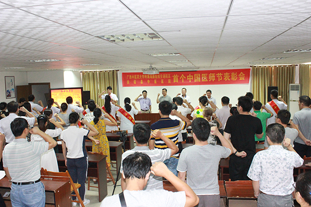 8月17日下午,空港院区隆重举行庆祝首个“中国医师节”活动暨表彰会。广西中西医结合研究所所长龙学明,空港院区领导班子、五家院区医共体分院的院长及院区干部职工100余人出席了本次活动。活动由院区党总支书记林宗汉主持。