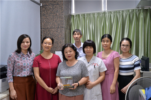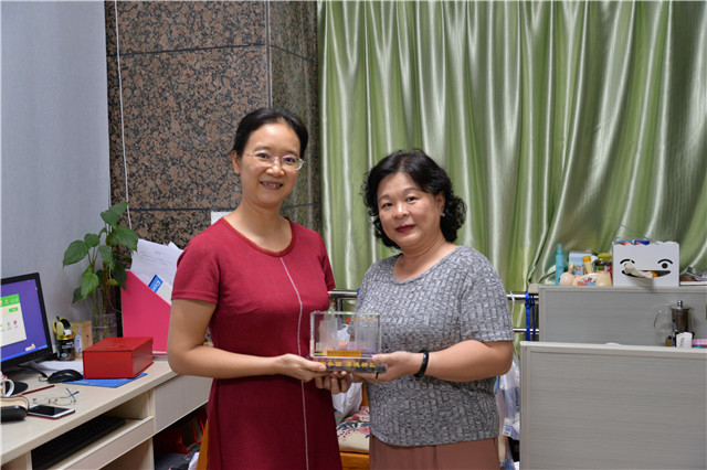 最后,人力资源部职改办主任彭爱莲代表医院向姜振兰和滕南南赠送纪念品,并合影留念。