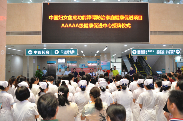 9月13日下午,我院“中国妇女盆底功能障碍防治家庭健康促进项目5A级健康促进中心”揭牌仪式在我院A座一楼大厅举行。法国斯特拉斯堡大学佛朗西斯教授、法中妇女健康协会秘书长王晓光教授、广西优生优育协会会长陈荔丽教授、我院院长唐友明,党委书记高宏君,副院长庞刚、韦思尊、陈锋、宋策及部分干部职工参加揭牌仪式。揭牌仪式由高宏君书记主持。