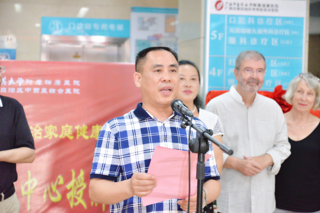 揭牌仪式上,唐友明院长代表医院向出席仪式的领导和嘉宾表示热烈的欢迎和衷心的感谢。他表示,通过层层审评获得的这个成绩,既是荣誉,更是责任,医院今后将继续发挥中西医结合特色优势,通过开展公益活动、家庭心理服务,把保健养生知识融入到家庭健康促进项目当中,不断增强群众的健康意识,让广大群众养成良好的生活习惯,来推动广西乃至全国的健康促进工作,为健康中国战略的实施做出应有的贡献。