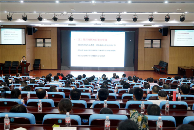 陈日兰教授就中医住培基地教评估指标、保障措施、基地管理等方面,结合我院实际情况,分别与各基地交流了管理和评估经验。汪国翔科长、朱英主任、伍世轰主任、冯原副主任医师则针对教学查房制度、中医住培教学过程形成性评价体系、中医临床思维培养、中医全科住培工作的基层实践、中医规范教学查房等方面进行授课,专题主要有《中医住院医师规范化培训政策解读》、《中医住培基地建设与评估》、《中医住培实践教学活动现场点评》、《中医全科医学概论及中医全科住培工作的基层实践》、《中医住培带教过程临床思维培养》、《中医住培教学过程形成性评价体系》、《住培实践教学活动开展》等,其中,教学查房示范的人员为我院2016级、2017级规培学员。授课内容充分切合基地建设需要,得到接受培训的基地与参训人员广泛好评。