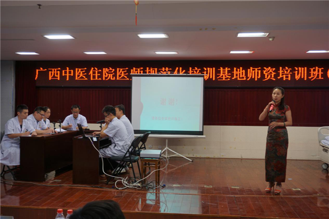 受自治区中医药管理局的委托,我院于2018年8月至9月分别赴贺州、北海、桂林、柳州等地举办广西中医住院医师规范化培训基地骨干师资培训班。培训班由自治区中医药管理局梁毅调研员带队,广西中医药大学附属瑞康医院党委副书记、副院长陈日兰,教务科科长汪国翔,针灸学教研室主任朱英,全科医学教研室主任伍世轰及内科学教研室冯原等一行前往授课。