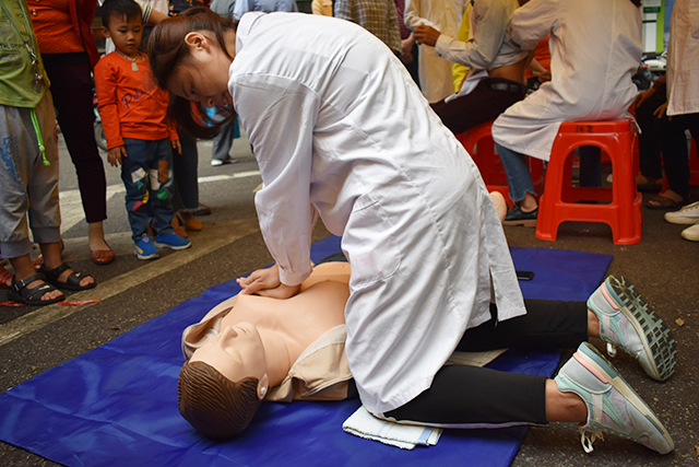 在本次活动中,红十字志愿服务队的志愿者们对社区居民进行了急救知识的宣传讲解,同时为他们测量血压,进行心肺复苏和骨折固定、止血包扎的宣讲以及推拿按摩等义务服务,还给社区老人们带来了各种小礼物。