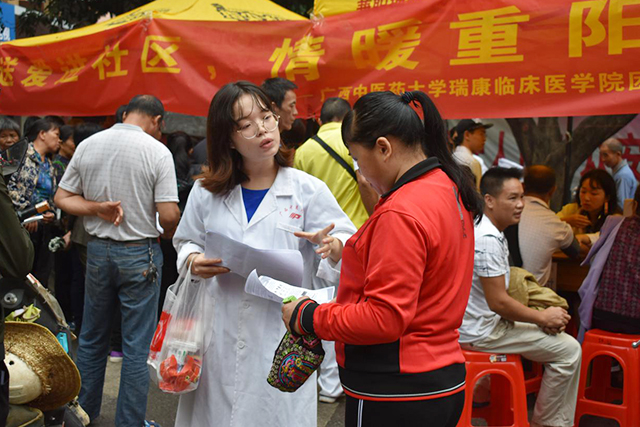 作为新时代的医学生,为积极响应急救进社区志愿服务的号召,向社区居民普及救护知识,提高社区群众的急救意识与现场急救能力,瑞康临床医学院红十字志愿服务队于10月14日在万秀村社区开展了以“送爱进社区,情暖重阳节”为主题的义诊活动。