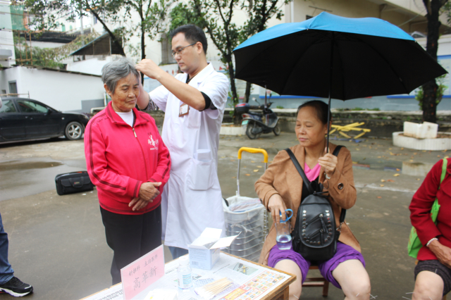 讲座结束后,义诊活动紧接着开始了,在义诊活动现场,医护人员为老人们有序进行了测量血糖、测血压、心肺听诊、针灸治疗、健康咨询等工作,帮助学员们了解预防保健知识,用通俗易懂的语言讲解老年人常见病的防治知识,并指导学员们养成良好的生活习惯。