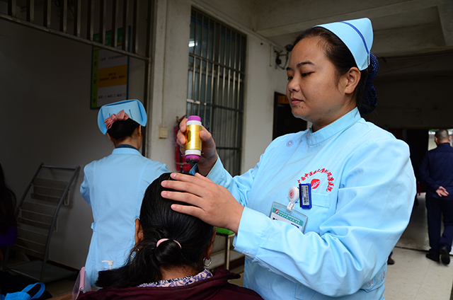 虽然义诊当天,天空不作美下起雨,但义诊还未开始就有不少群众在玉凤镇中心卫生院门口等待。义诊中,田阳院区医院人员仔细聆听群众提出的疑问,耐心解答、讲解季节常见病、多发病的预防措施,向广大群众宣传中医药“简、便、验、廉”的特色优势,传播中医药优秀文化,倡导健康生活方式。现场为有慢性病的民众望、闻、问、切,诊断病情,根据体质不同,提供适宜的治疗方案。义诊现场群众还现场免费体验雷火灸等中医特色治疗。