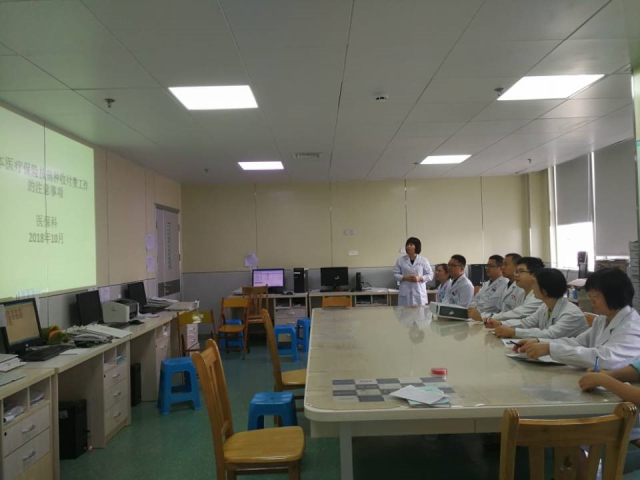 为进一步提高院内各科室对按病种付费的了解,自十月起,医保科在科长卢银波的带领下先后来到肾病内科、骨科、呼吸内科等十几个临床科室,结合各科室实际,与科室共同就科室具体病种的推行进行学习研究,解答了各科室在尝试推行按病种付费过程中遇到的相关问题。