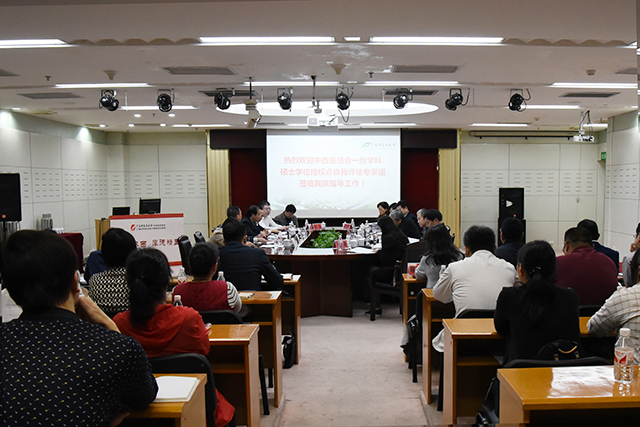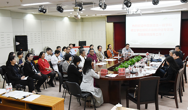 11月14日上午,由黑龙江中医药大学李冀教授、北京中医药大学刘建平教授、右江民族医学院唐乾利教授、湖北中医药大学王平教授、广州中医药大学第一附属医院冼绍祥教授、上海中医药大学附属岳阳中西医结合医院沈雁教授和湖南中医药大学第一附属医院邓奕辉教授组成的专家组莅临我院,对我校中西医结合一级学科硕士学位授权点自我评估开展现场评审。我校副校长戴铭,总督学、中西医结合学科带头人罗伟生,研究生学院副院长易蔚、祁文,我院院长唐友明,党委书记高宏君,党委副书记、副院长陈日兰,副院长庞刚,党委副书记、纪委书记黄建民,副院长陈锋、宋策等领导出席评审会。