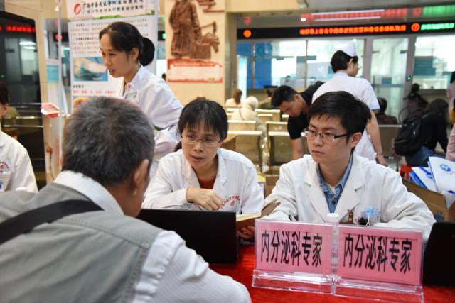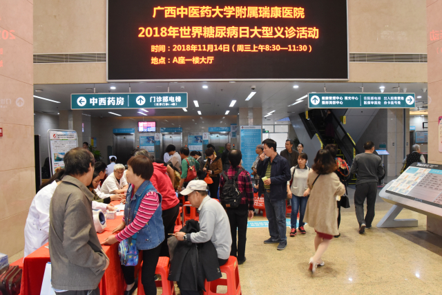 今年11月14日是第十二届联合国糖尿病日,主题是"家庭与糖尿病"。当天上午,我院内分泌科、营养科、眼科、骨科、心脏康复中心在我院A座大厅联合举办糖尿病义诊活动,呼吁家庭预防和控制糖尿病,改善糖尿病管理水平,提高家庭生活质量和健康水平。