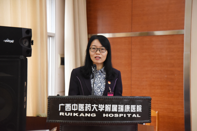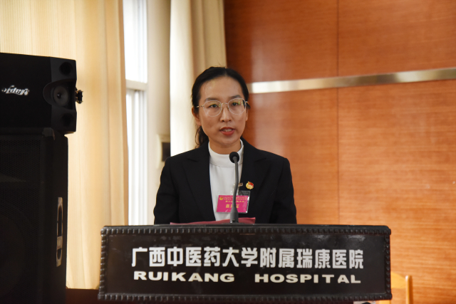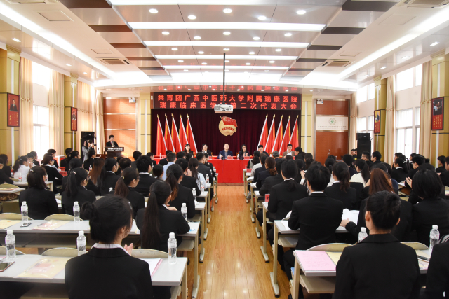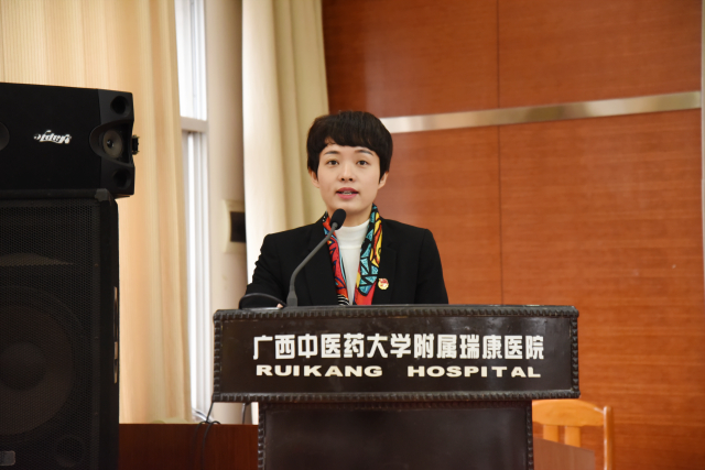 本次会议是一次高举伟大旗帜、宣示青春理想、凝聚青年力量、传承青春事业的盛会, 大会由主席团秘书长蒋娴主持。开幕式上,广西中医药大学团委书记王春花代表上级团组织致辞。她指出,共青团广西中医药大学附属瑞康医院、瑞康临床医学院在五年中,以育人为中心,在各级别评比中获奖频频,共青团在广大团员青年中的号召力、吸引力和凝聚力得到全面提升。她希望广大团员青年在医院党委、团委的带领下,围绕中心、服务大局、强化使命担当、释放青春热情,努力开创共青团广西中医药大学附属瑞康医院、瑞康临床医学院事业的崭新局面,不断创造好的成绩,为学校加快建设成为国内知名、区域一流的医学类大学添砖加瓦、贡献智慧。