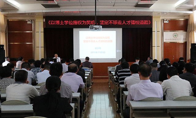 庞宇舟副书记以三国典故、北京大学和西南联合大学的发展故事为例,强调了人才对于学校乃至国家和民族的重要性。他从当前高校人才工作形势、我校人才工作存在的主要问题和我校人才工作的思路与举措等内容进行精彩讲授,围绕2019年学校博士招聘计划进行解读并提出工作要求。